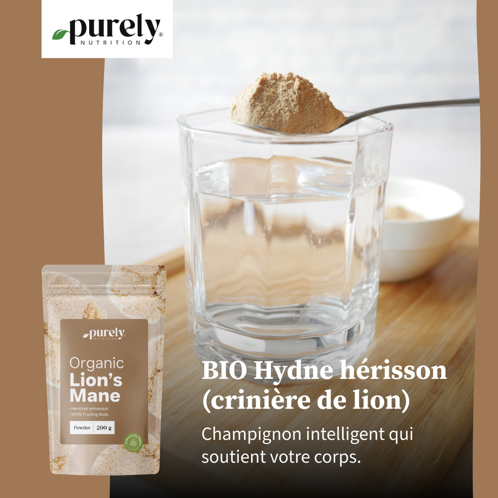 La crinière de lion BIO est issue d'une culture 100 % écologique, sa forme en poudre offre plusieurs modes d'utilisation - que ce soit seul (à mélanger dans de l'eau) ou pour préparer une boisson fonctionnelle (à ajouter au café, au cacao ou au matcha) ou comme complément à différents plats, salés ou sucrés.