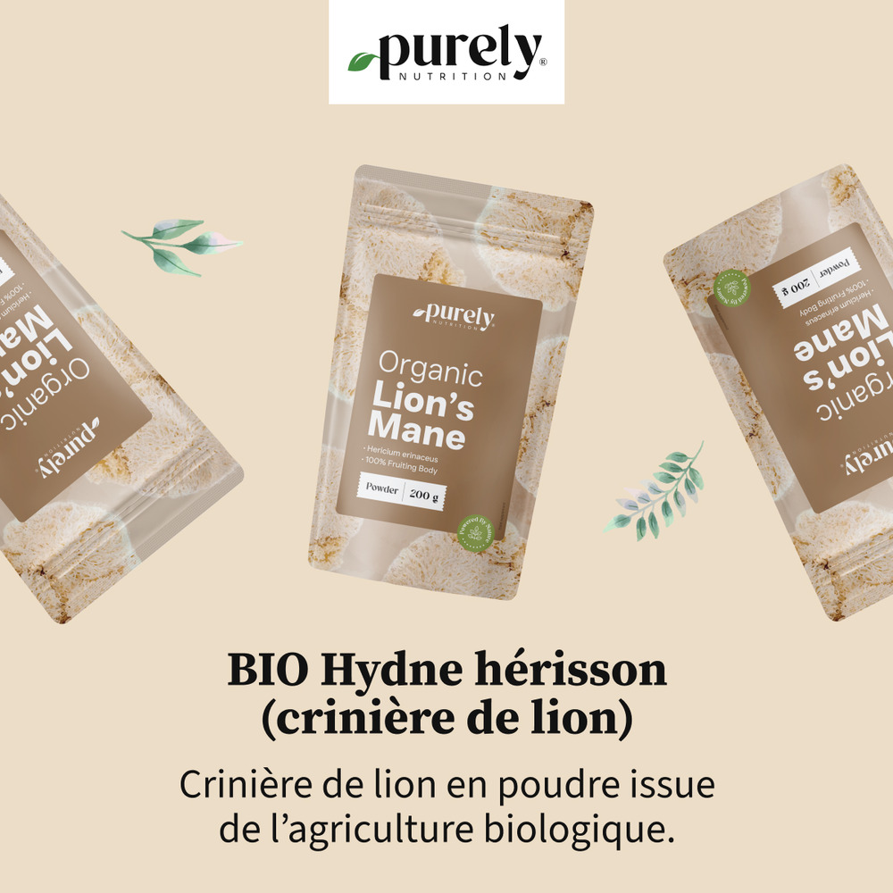 Ingrédients : hydne hérisson (Hericium erinaceus) en poudre de culture biologique certifiée. Distribution contrôlée par SI-EKO-002. Agriculture hors UE.