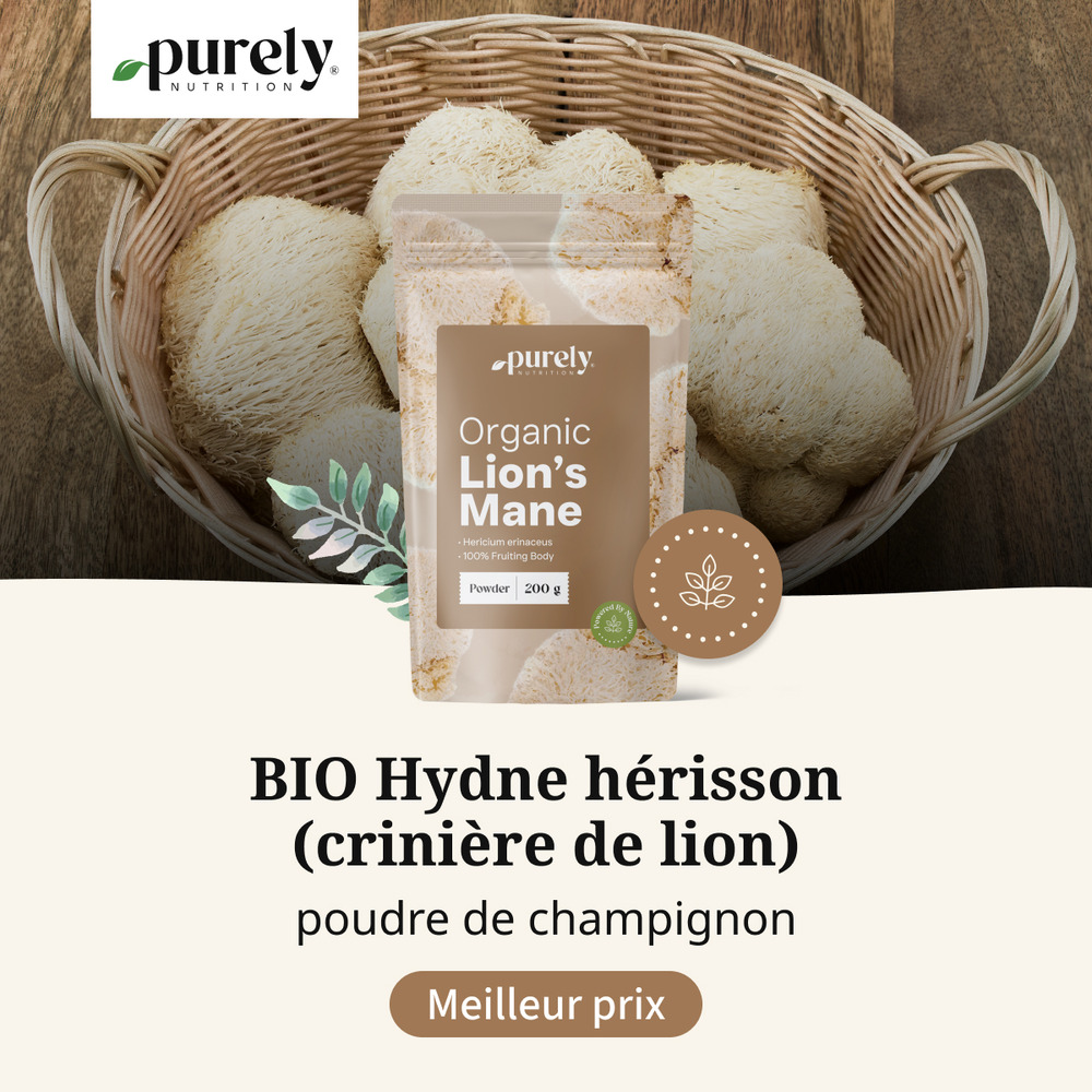 3x BIO Hydne hérisson (crinière de lion) – poudre de champignon
