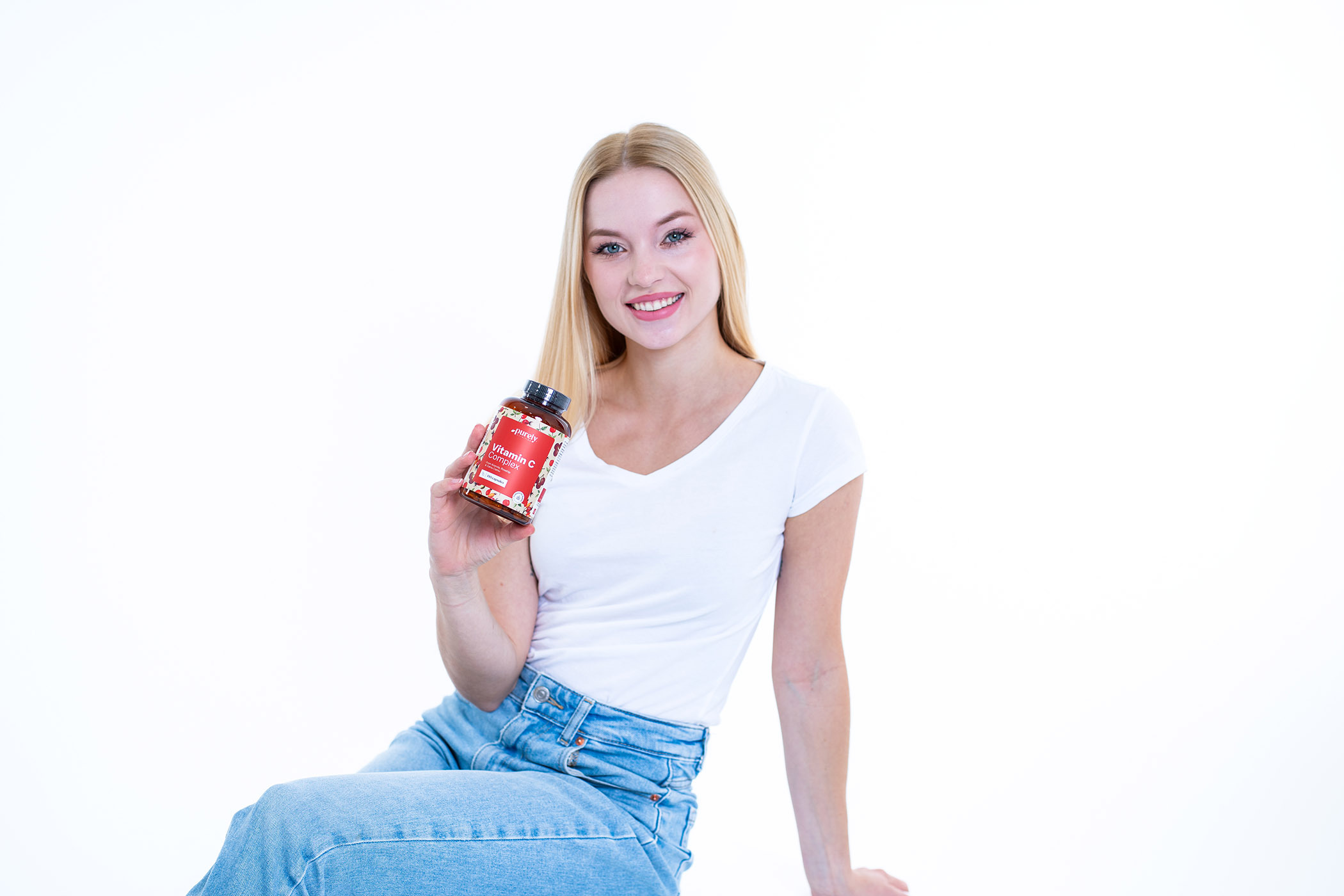 Ingrédients : ascorbate de calcium, extrait de fruit d'acérola 15:1 (Malpighia glabra; 25 % de vitamine C), extrait de fruit de camu camu 5:1 (Myrciaria dubia; 30 % de vitamine C), amidon de pomme de terre, extrait de fruit d'églantier 20:1 (Rosa canina; 45 % de vitamine C), hydroxypropylméthylcellulose (HPMC; enveloppe de gélule végétale).