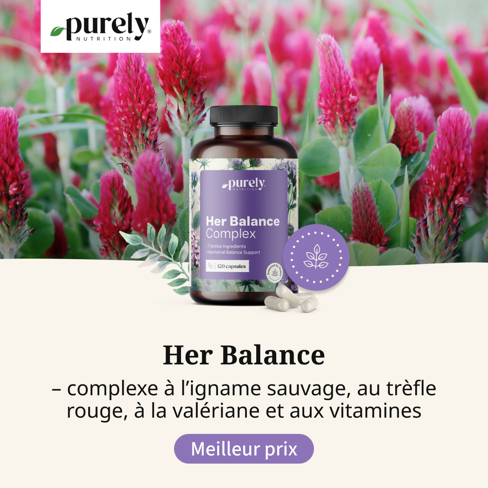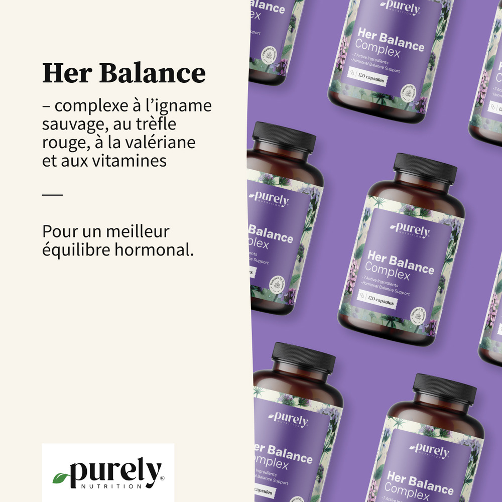 Her Balance – complexe à l’igname sauvage, au trèfle rouge, à la valériane et aux vitamines
