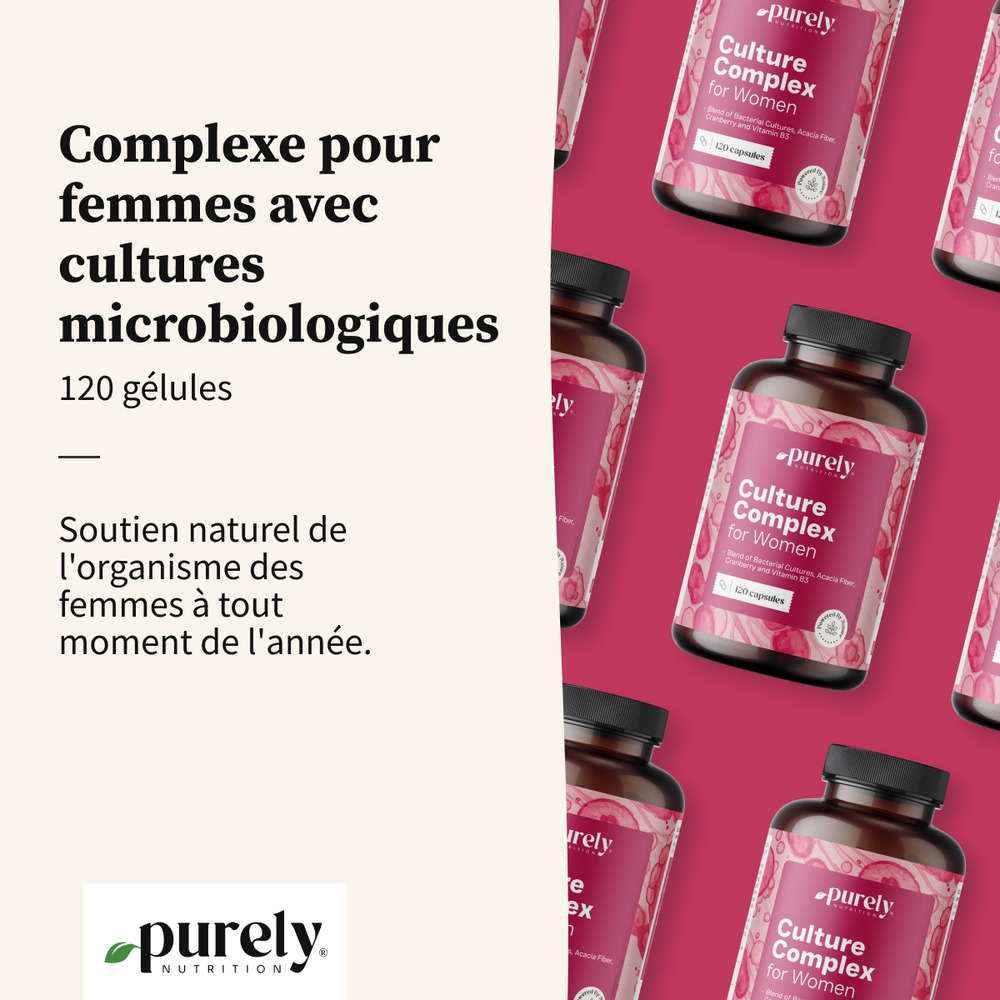 Ingrédients : fibres d'acacia, agent de charge: cellulose, hydroxypropylméthylcellulose (HPMC; enveloppe de gélule végétale), extrait sec de canneberge (Vaccinium macrocarpon; fruit; standardisé à 50 % de proanthocyanidines), anti-agglomérant: sels de magnésium d'acides gras, niacine (vitamine B3), mélange de cultures bactériennes 500 milliards / g (Lactobacillus acidophilus, Lactobacillus casei, Lactobacillus crispatus, Lactobacillus gasseri, Lactobacillus plantarum, Lactobacillus rhamnosus).