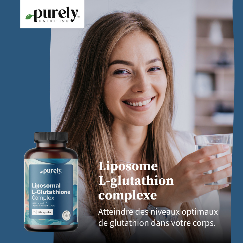 Ingrédients: L-glutation, complexe de phospholipides, hydroxypropylméthylcellulose (HPMC; enveloppe de gélules végétale), acide ascorbique (vitamine C), acide hyaluronique, stéarate de magnésium, acide alpha-lipoïque (ALA).